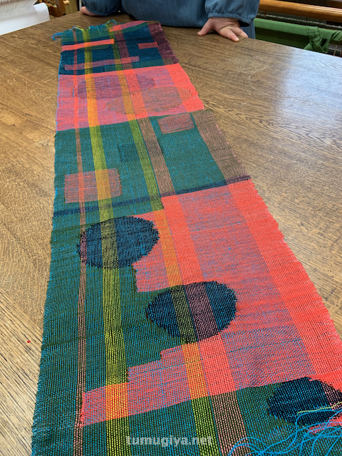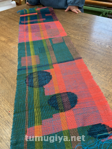 鮮やかな布が 織りあがりました